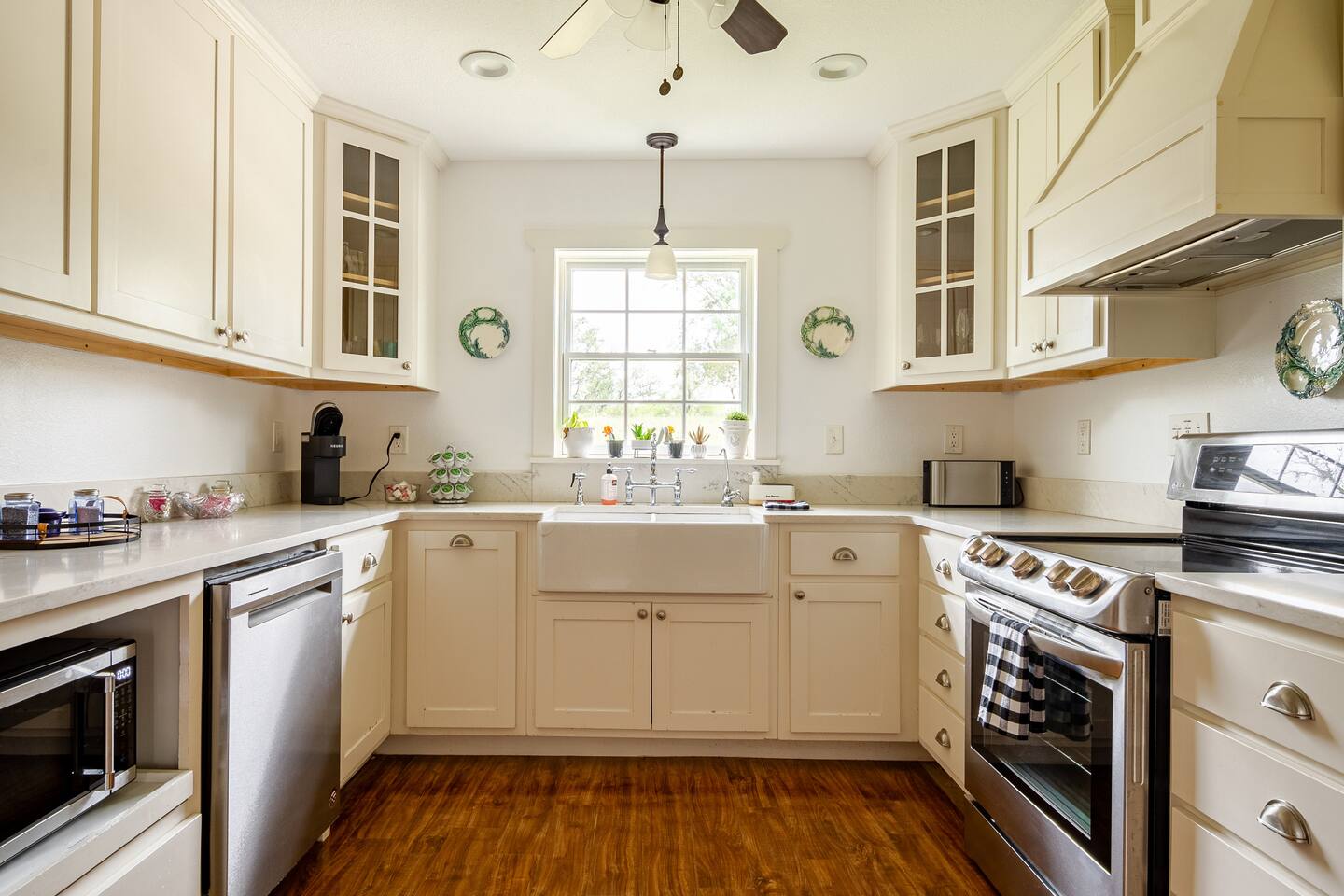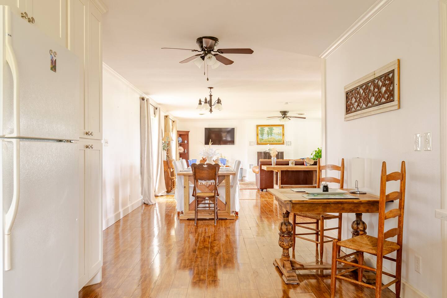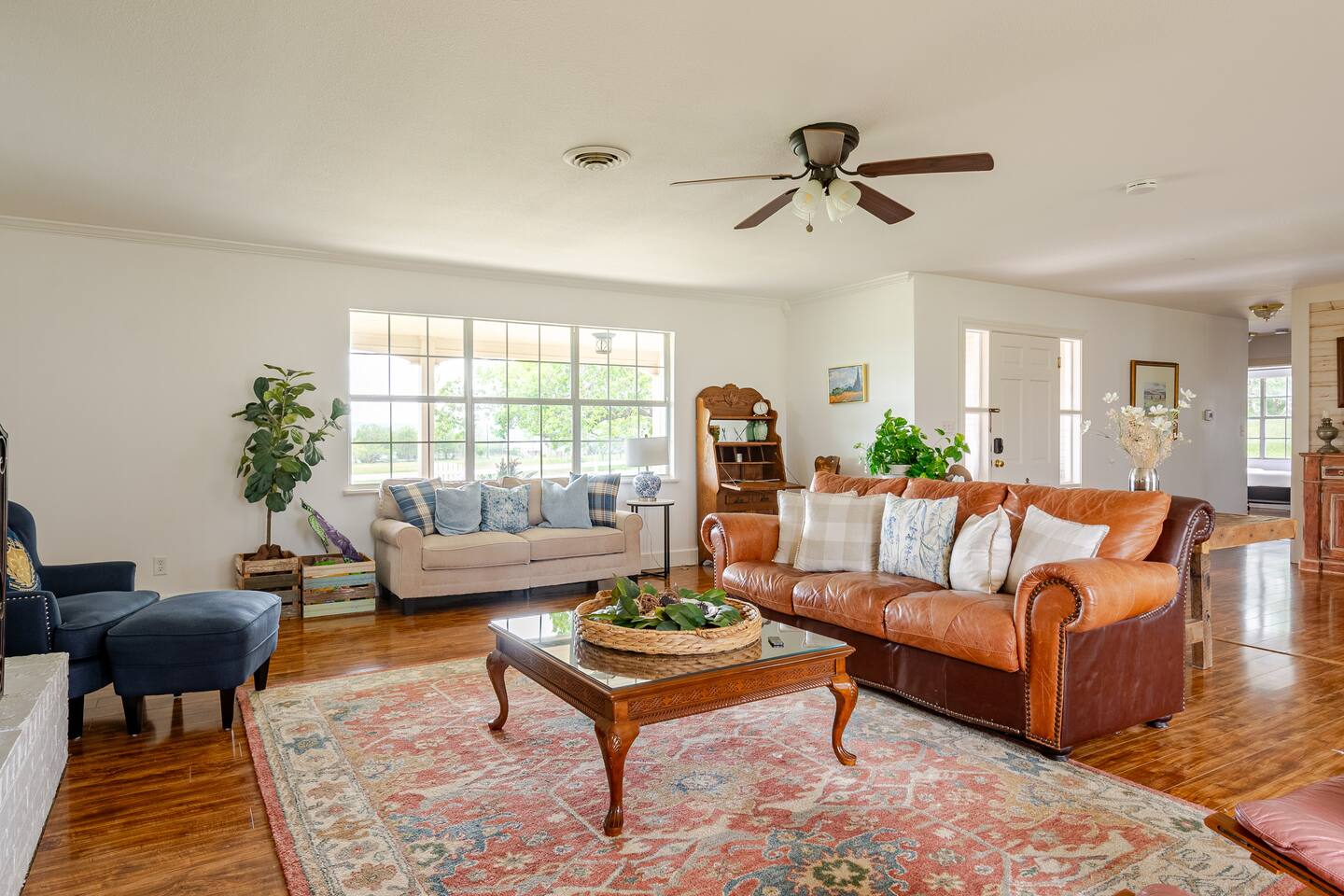 The perfect location for a vacation! Meadowview is the jewel of Fredericksburg Gateway Estate. This 3,116 sq ft home sits on the 290 Wine Trail, secluded on 125 acres, minutes from downtown. Our 5 bedroom home combines peace, charm, history, and beauty. 2 additional homes on the Estate can be combined if more space is needed. Weddings with these views are amazing. This spacious updated farmhouse & the large raftered barndominium can host your weddings and gatherings!